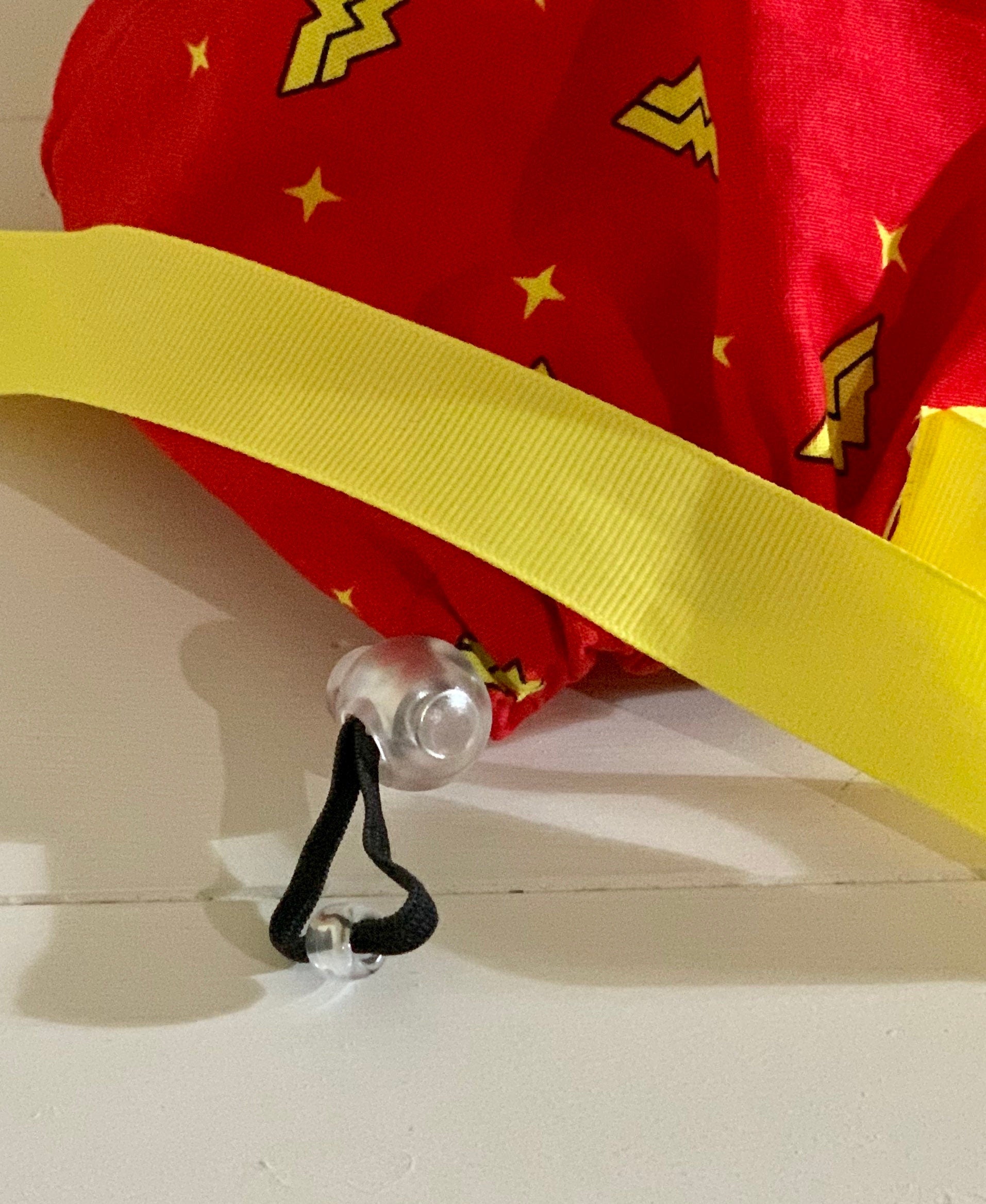 Wonder Woman Tie Back Surgical Scrub Cap with button option- Choose ribbon color in order notes